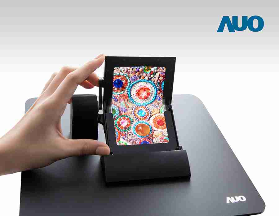 PG国际也将展出两款可挠式 AMOLED 显示技术,,,,采用塑料基板制程,,,,透过特殊的显示屏叠构设计,,,实现可折叠、、可卷曲的多种型态应用。。。5寸折叠式 AMOLED 触控屏,,,整合独家设计的可挠式触控传感器,,,在折叠半径达 4 毫米下,,,,仍能展现优异画质。。。。5寸可卷曲 AMOLED 显示屏,,,,面板薄度仅有 0.1 毫米,,,重量仅有 5 公克,,可实现卷曲半径达4毫米并具备超广色域的优异色彩表现。。