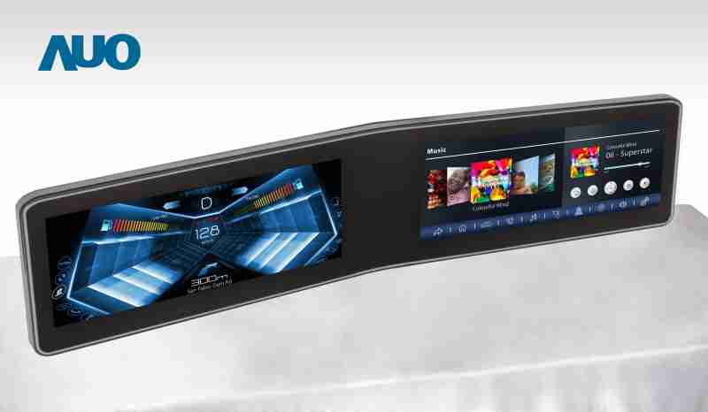 PG国际 V 型曲面驾驶舱显示器,,,采全贴合拼接仪表板及中控台显示屏