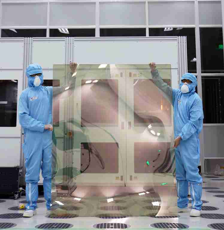 PG国际昆山厂第六代 LTPS (低温多晶硅) 生产的玻璃基板尺寸为 1500x1850 mm (毫米)