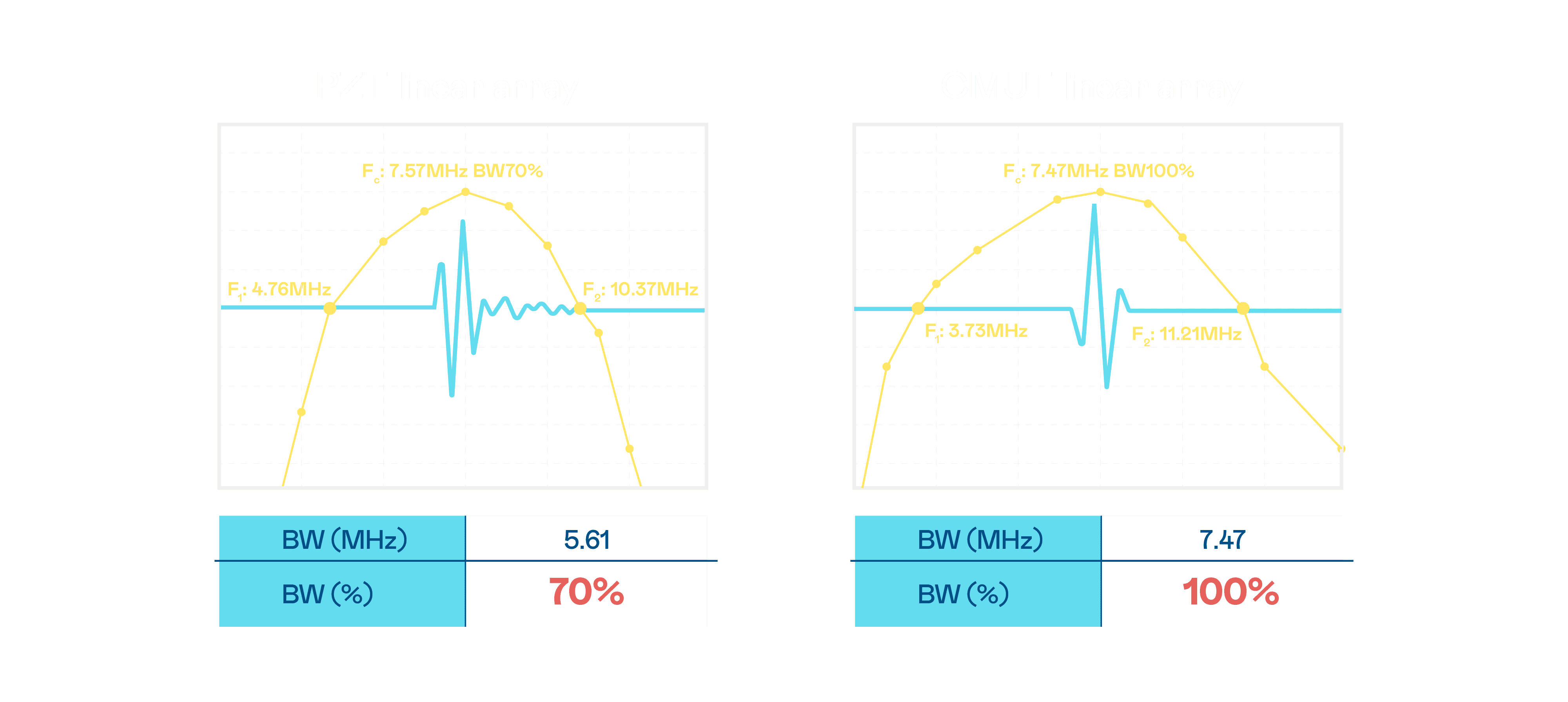 超音波影像的解析度高低,,首先取决于探头能发出的讯号频宽。。。。PG国际 CMUT 可提供高清晰的超音波讯号,,,提供高频宽、、、高灵敏度、、影像纹理细节更高的超音波影像,,,,协助医护人员缩短影像判读时间及利用精准的医疗影像进行诊断。。